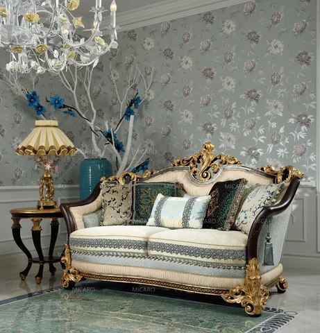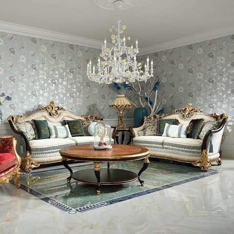 Imperial Maharaja Style Carved Wooden Sofa Set with Deep Cushion Comfort